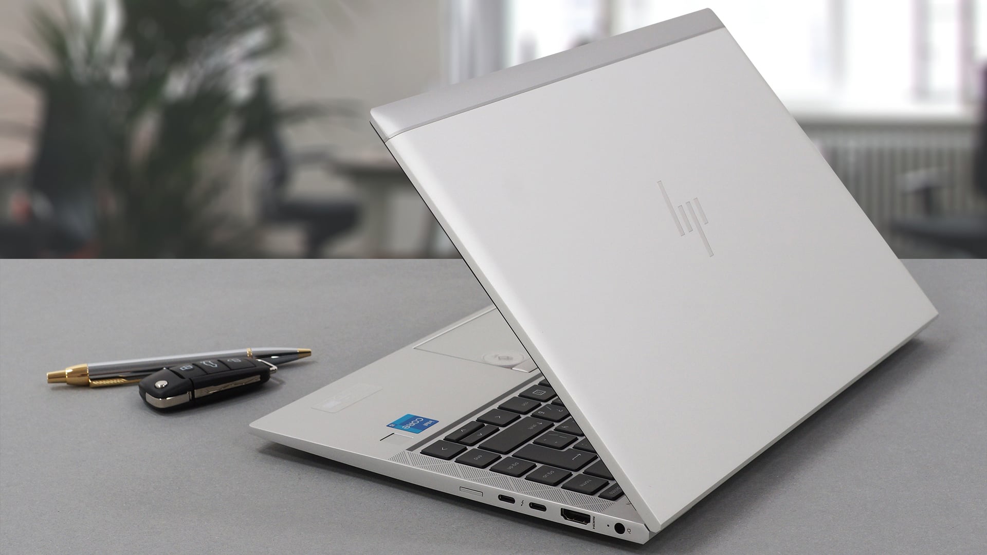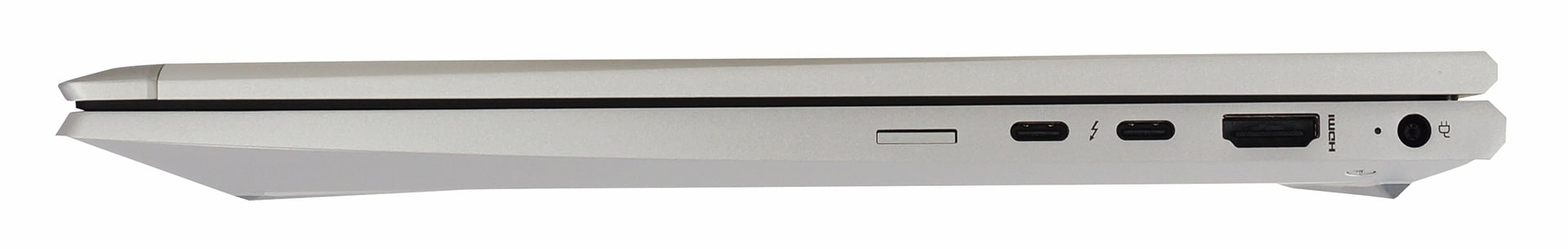 Phía bên trái của máy tính xách tay có một khe cắm hình nêm bảo mật, hai cổng USB Type-A 3.2 (Gen. 1), một giắc cắm âm thanh và một đầu đọc Thẻ thông minh. Sau đó, ở bên phải, bạn có một phích cắm điện, một đầu nối HDMI 2.0b, hai đầu nối Thunderbolt 4 và một khay thẻ SIM.