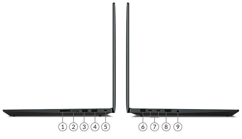 Trong khi Precision 5560 chỉ cung cấp ba cổng USB-C (hai cổng với Thunderbolt 4) và một cổng USB Type-A và HDMI, thì ThinkPad có các cổng kết nối đầy đủ hơn. Hai cổng Thunderbolt 4, cổng HDMI, giắc âm thanh và cổng sạc nằm ở cạnh trái của máy. Cạnh phải chứa hai cổng USB 3.2 Type-A và một khe cắm thẻ SD cùng với khe khóa bảo mật. Các người dùng mạng có dây sẽ tìm thấy bộ chuyển đổi USB-C sang Ethernet trong hộp; Wi-Fi 6E và Bluetooth được dùng cho kết nối không dây.